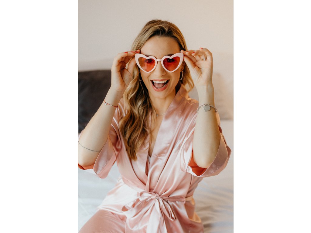 Sluneční brýle ve tvaru srdce jsou ideálním doplňkem na svatbu či rozlučku se svobodou. Jejich růžový odstín je dokonalým doplňkem k tradičnímu svatebnímu oděvu a přidává do celkového vzhledu jemný a romantický dotek.