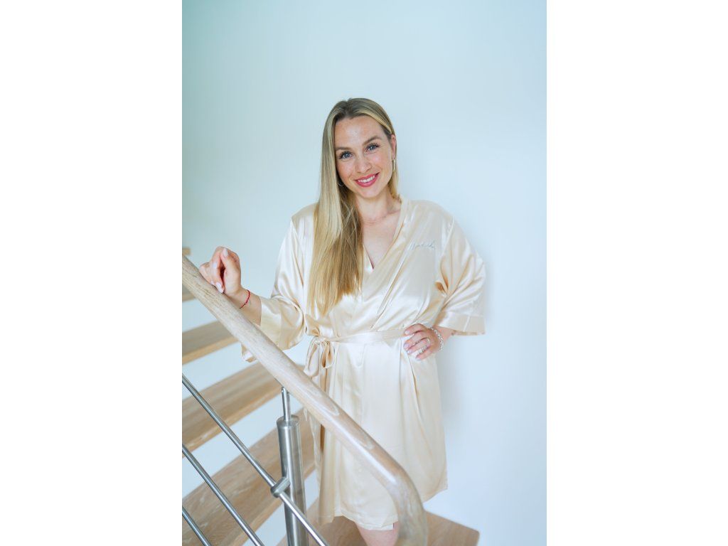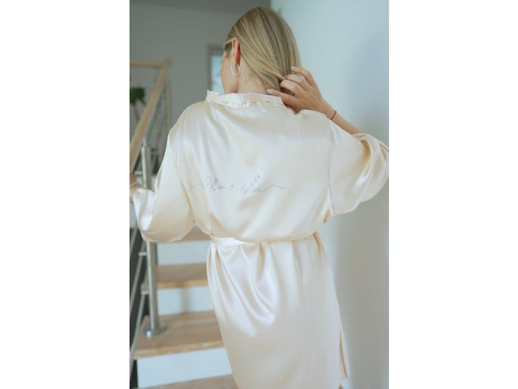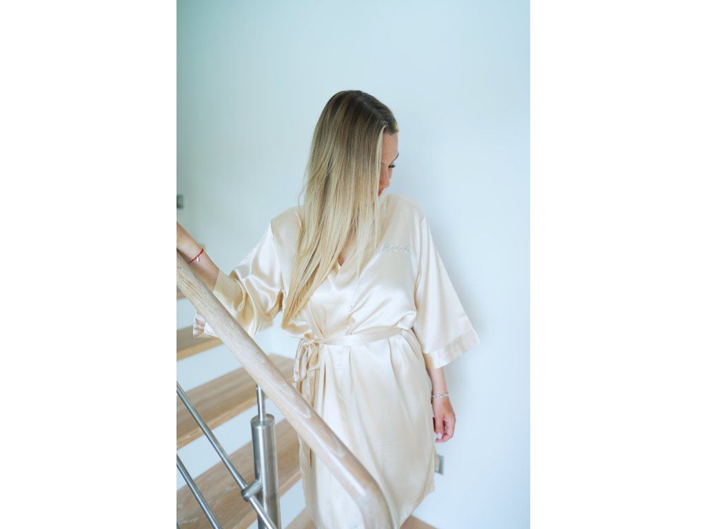 Župánek je na výběr v jemné růžové nebo champagne barvě a je nejen skvělým dárkem pro vaši důležitou osobu, ale také nezbytným doplňkem pro vaše svatební přípravy. Udělejte z každého okamžiku vašeho svatebního dne nezapomenutelný zážitek s tímto elegantním župánkem pro družičku.